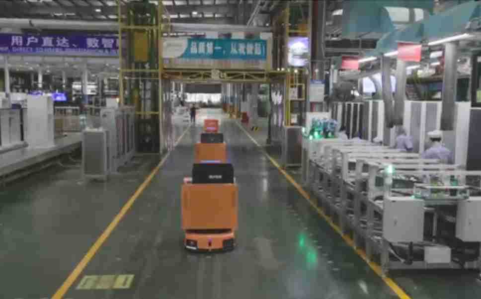 为车载冰箱物流配送打造的智能解决方案,,包含产中物流通过潜伏举升AMR搬运至线边,,,产后成品物流智能仓储,,,流程包含产中物流智能齐套入库,,,,线边安灯叫料AMR智能配送至线边,,,,成品入库、、出库,,通过无人堆高车机器人,,智能仓储管理替代人工作业管理,,,实现更高存储、、更高效率、、、更具柔性化的解决方案。。。